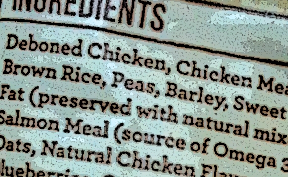 To find out if your pet’s food contains any or all of these ingredients, first find the ingredient panel on the can or bag. Make sure an identifiable meat source is listed first (ingredients are listed in order of their weight). If the meat – chicken, for example – is followed by the term meal, it means the chicken was cooked and ground-up prior to adding it to the recipe, which is acceptable. If the type of meat is followed by the term by-product, however, you may want to consider another food for your pet. “By-product” isn’t the meat you and I are used to eating; instead, it’s any combination of internal organs, intestines, and other “leftover” parts, up to and including feet.