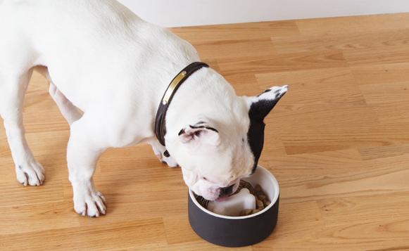 Lately she has been eating out of the Magisso Happy Pet Project Bowl ($32). It is a small ceramic bowl with a bone-shaped protuberance in the bottom that requires your pup to work a little harder to get all the kibble or fresh food tucked around it. There’s a cat bowl but a fish-shaped mass diffuses the food. Designed in Finland for Smart Pet Parents by Simon Stevebs, the bowl is also meant to be submerged in water for 60 seconds “and it will become cool even for hours.”