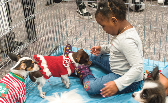 Captions for photos: Nova and her family arrived at Macy’s and embarked on a store scavenger hunt for dog supplies and met Santa who let Nova know she’ll be getting a real puppy. Her wish for a puppy was granted through Make-A-Wish Greater Bay Area. Party planner Puppy Love Party and nonprofit Underdog Animal Rescue had a few dogs on hand so Nova could practice her cuddling skills. She earned a certificate that said she’s a puppy expert.