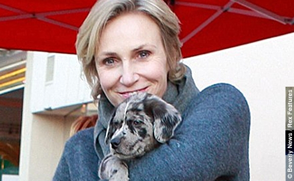 We’ve seen two pieces of news this week about shelter dogs landing in some pretty famous laps. Actress Jane Lynch, Glee’s Sue Sylvester and a dog trainer in the classic Best in Show, is a huge animal lover. She and her wife and step-daughter already share their home with pets. After meeting an adorable 5-month-old puppy at an adoption fair they took him home and named him Francis.