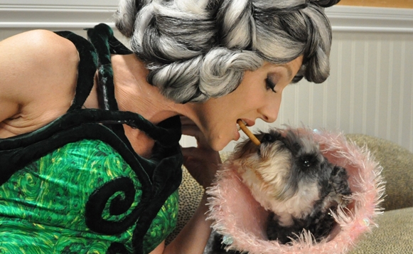 All show biz dogs have to have the patience to sit and wait for their commands. In film especially, scenes often get reshot many times. Poor Kompis spent hours in the arms of Calico Cooper (Alice Cooper’s daughter) for her role in “Puppy.” During rehearsals for The Wizard of Oz, she got past her fear of the screaming children on stage and eventually grew to love them.