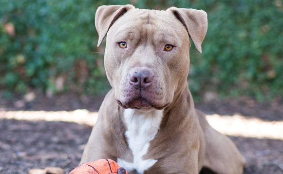 Peanut loves a good squeaky toy, but because he is so big, it is recommended he not be placed in a home with children. He is a big, goofy high-energy and playful dog who is just as handsome as they get.