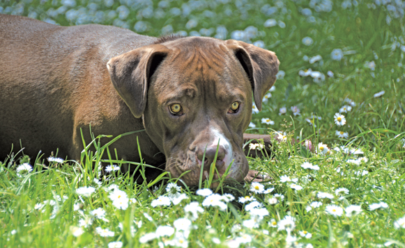 To give Louie his best chance at a happy, healthy life, we needed to find a way to help him live with ME. Dr. Ann Newcomb, our veterinarian, researched his condition and learned about the Bailey Chair, a chair custom built to allow a dog to sit in an upright position while eating and for about 20 minutes afterward. This allows gravity to help food and water move down into his stomach. We had a Bailey Chair made for Louie, and we lavished attention on him as he became accustomed to his mealtime chair routine. With the aid of his Bailey Chair and the constant encouragement of staff and volunteers, Louie quickly gained weight and filled out his handsome and robust 90-pound frame.