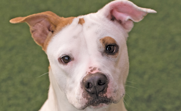 Emma is a 1-year-old spayed female white Pit Bull Terrier. She’s a gentle soul who enjoys long walks and cuddle time. As a young dog, she’s also very playful. Emma is spayed, microchipped, and fully vaccinated. Her ID number is A834960.