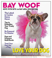 Bay Woof is a free monthly newspaper for San Francisco Bay Area dog lovers. Our mission is to be the voice of the local dog community and an essential resource for people who love their pets — the wonderfully dense and diverse population of the San Francisco Bay Area.